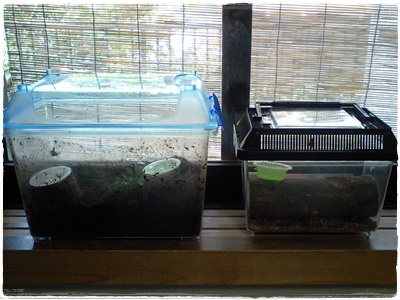 狭いので、クワガタのカゴと交換しました。