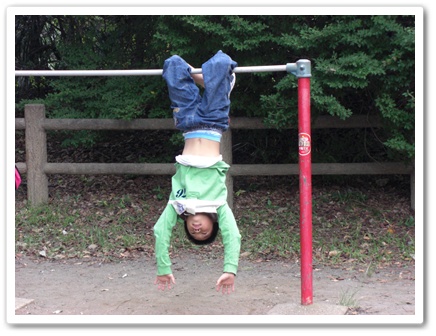 ゴメンよ、ママ夢中で鉄棒してて(笑)