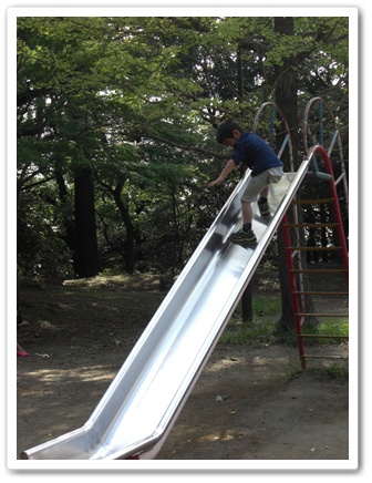 立ちながら滑り台を滑ってました、、、何度も(~_~;)