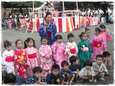 私がお友達に言ってやっと帰ってもらい、幼稚園の盆踊りに行きました。