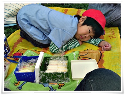 次々と食べている私とは対照的に、あまり食べないまぁくん。
