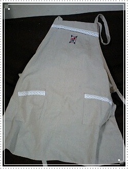 レーステープと刺繍が終わって完成したエプロン。