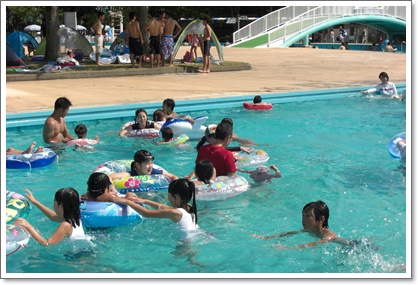 みんなが休憩に戻ってきたあとまたプールで遊ぶ前に