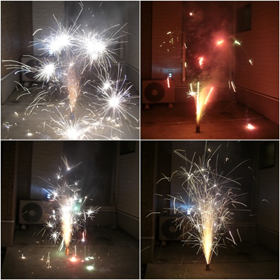 手持ち花火が終わったら、大きめの吹き出し系の花火をしました。