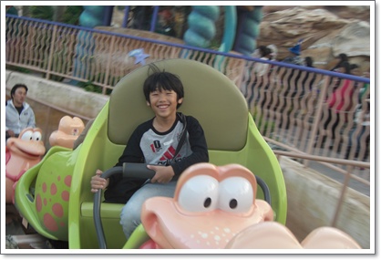 でも、子供達はビビリでアトラクションに乗りたがらないのよ